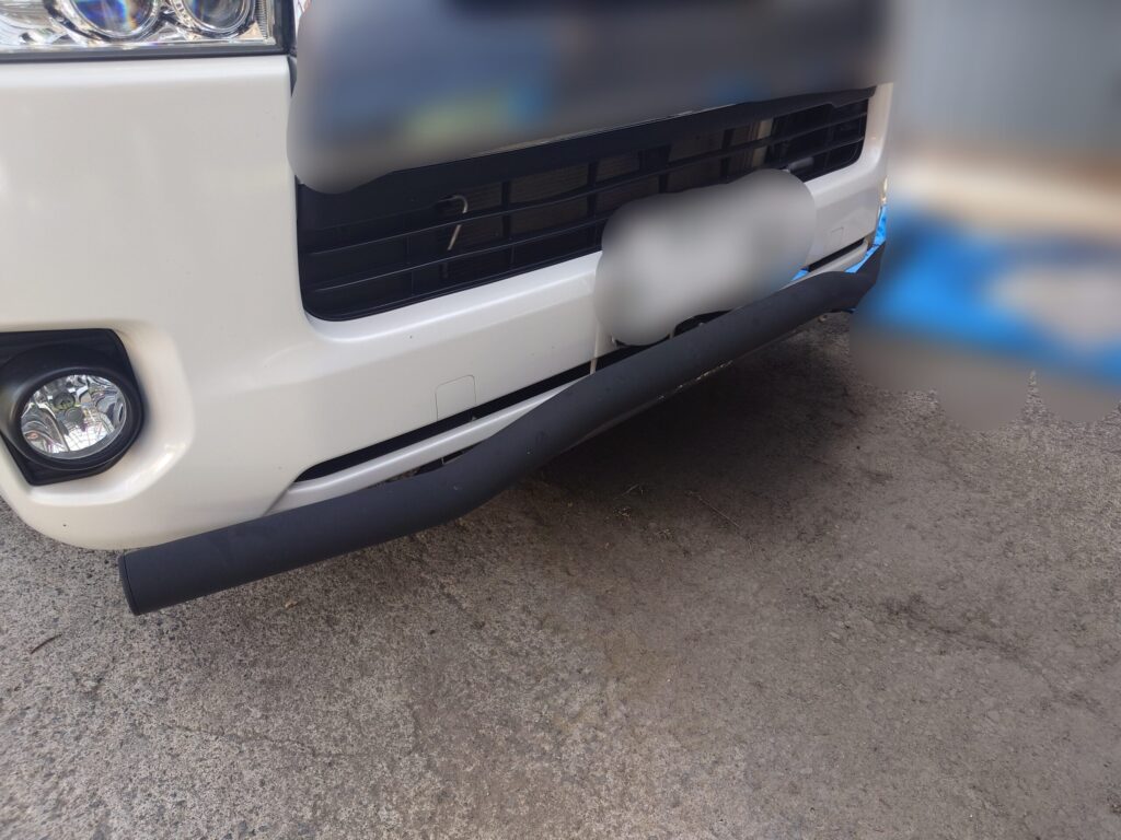 ※グリルまで覆うようなガードも他社で販売していますが、新しいハイエースの型式だと前方センサーが反応することがあるため、センサーをオフにするなどの対応が必要とのことです。