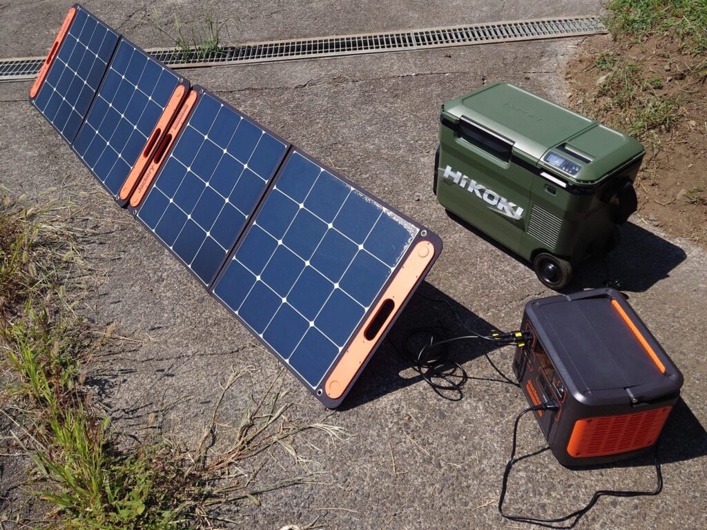 そこで今回試してみたのが、ポータブル電源+ソーラーパネル+クーラーボックス の組み合わせです。