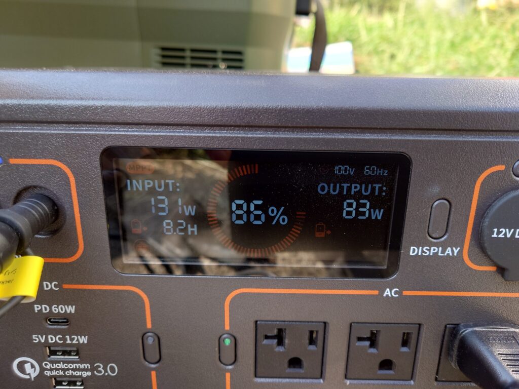 モニター表示を確認すると、消費電力より発電量が上回り、充電しながら稼働可能 なことが確認できました。